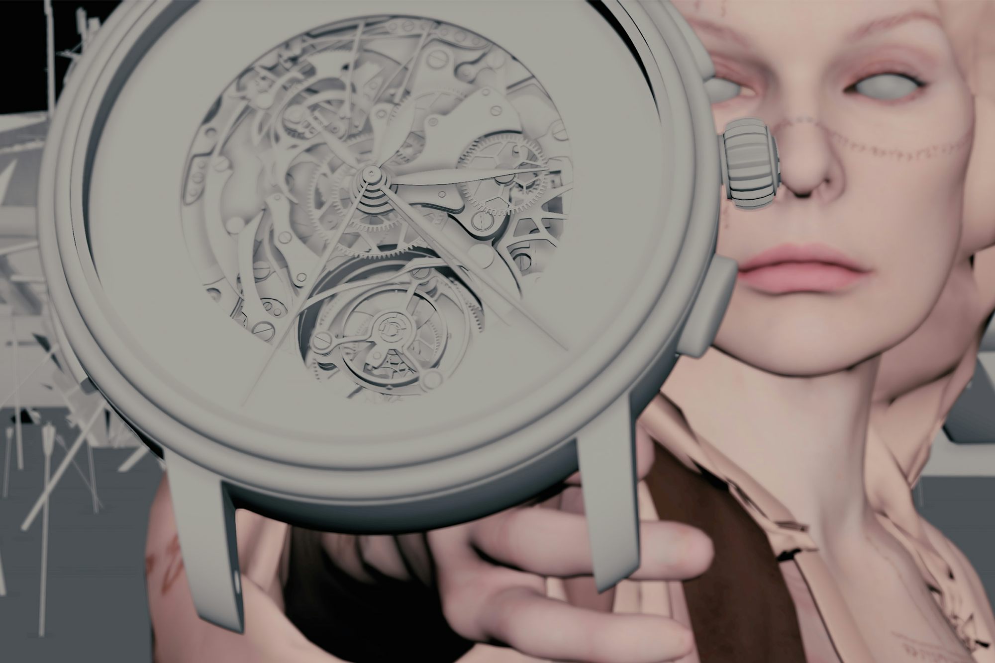 “We had to up our game, as the normal schematics weren’t going to be available, being classified production drawings from Blancpain. But they let us scan an actual Carrousel Répétition with macro retrofits to our normal scanners. We scanned it at three times the normal resolution, with around 50,000 pixels across every image. We ended up taking over 300 shots and very, very painstakingly tried to recreate the movement, where the textures are very, very subtle. To capture the way light plays within it involved a lighting study, also on the animation piece, working within Paul’s vision of what it needed to do tumbling through the air and how it looked within the movement. It was a great project, even a mission, to recreate this watch. We wanted to respect it, achieve photorealism, and not let anyone feel like it was a digital watch. It needed to look photoreal for the moment, and I think we achieved that. The process probably took about five months to reach a point where we were happy.”