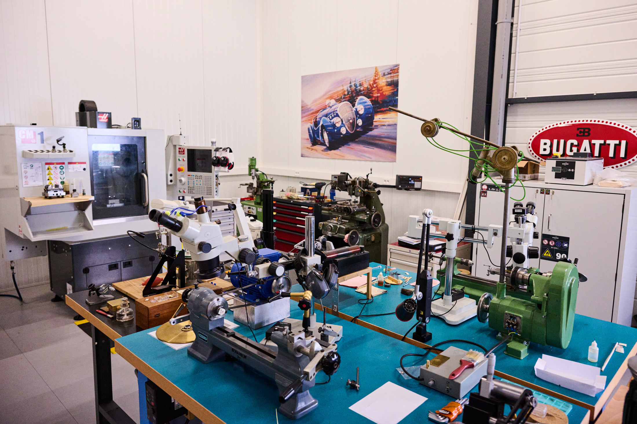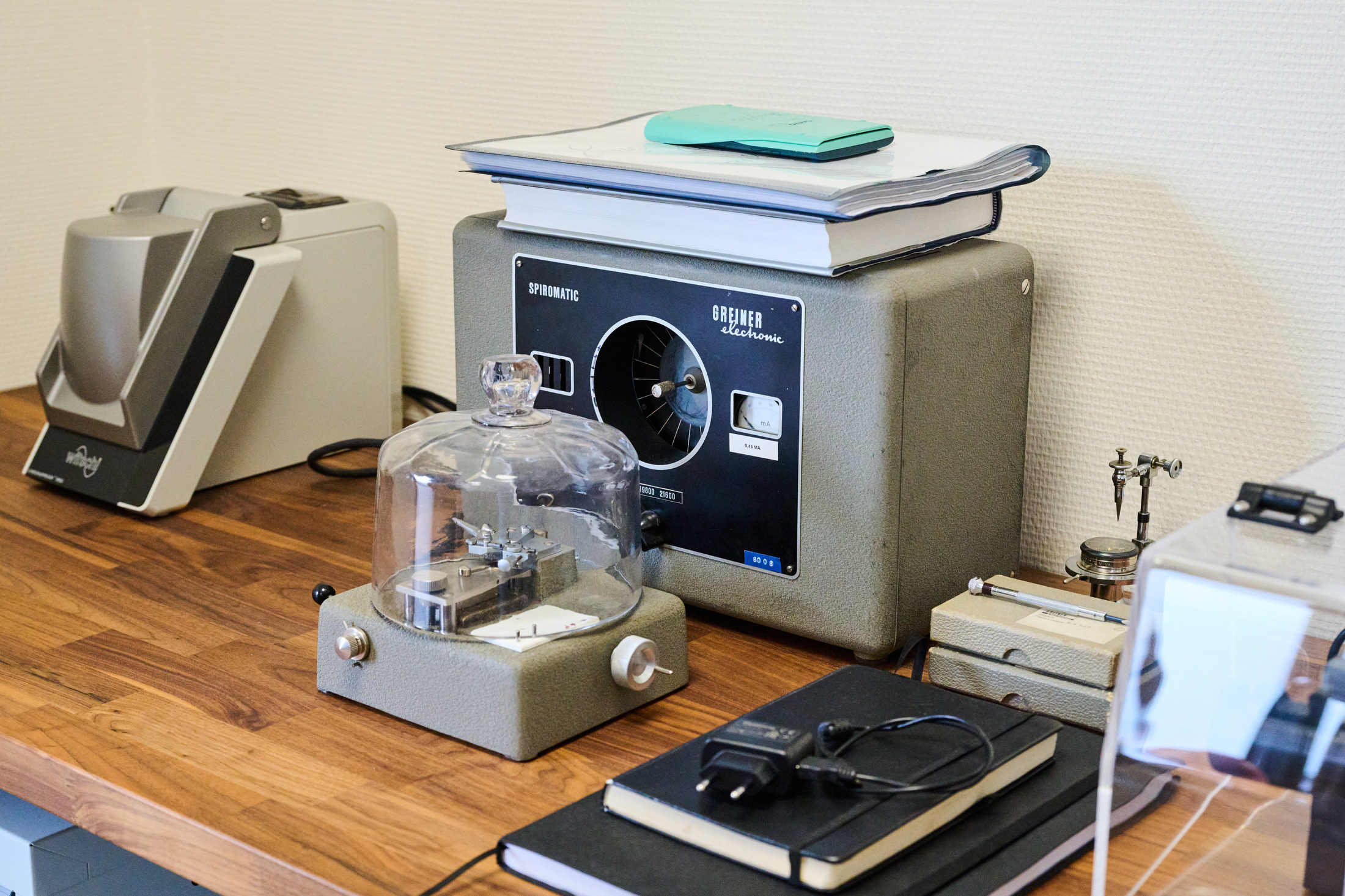 It’s also impressive what he can do with just a team of two (not counting his adorable dachshund Gaston, who led me over to the Greiner Spiromatic but for some reason was unable to demonstrate how to vibrate a hairspring).