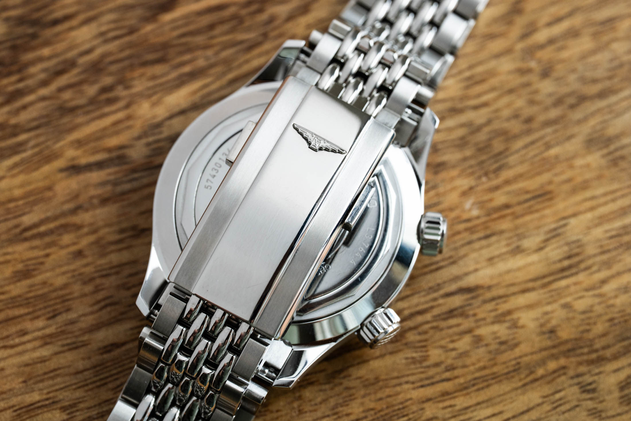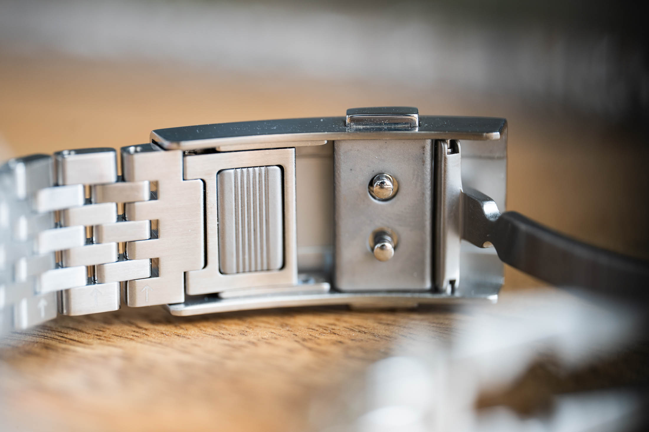 On the wrist, the 47mm lug-to-lug makes the 39mm Legend Diver quite comfortable for a variety of wrist sizes. The lugs are compact, and the bracelet endlinks downturn immediately. Speaking of the bracelet, the beads-of-rice bracelet looks good and suits the watch. It is well-made, although screwed links would have been preferable to the pin system used here. What the bracelet does have going for it in comparison to many other watches at its $3,550 price point is the tool-less micro-adjust clasp. It offers four positions of adjustment through a pusher on the wrist side of the clasp, and is very easy to operate.