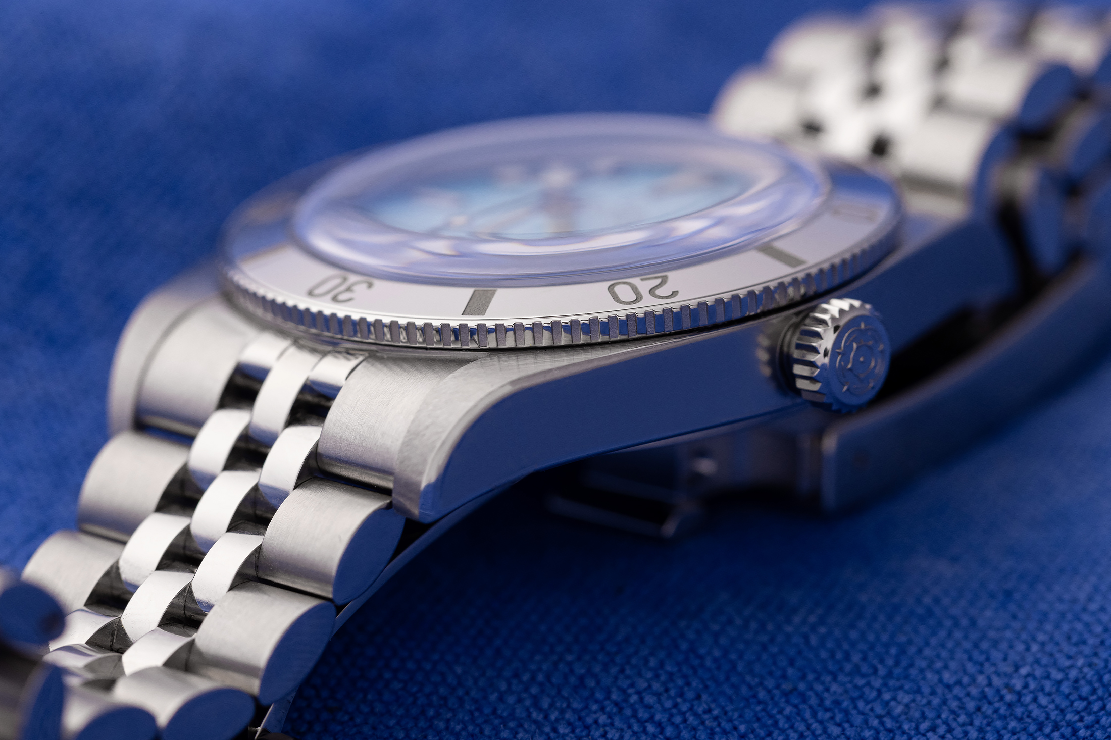 The Lagoon Blue 54 isn’t just a simple dial color change or an aesthetic switch-up that aligns with what we’d traditionally expect from something sporty, vintage-inspired, and distinctly Tudor, which, by the way, I would have welcomed. Had this been a 925 treatment, like what we saw with the Black Bay Fifty-Eight back in 2021, I’d have been all for it. But pale blue isn’t a totally new departure. It comes on the back of the success of the Flamingo Blue and the Inter Miami Pink Chrono, and perhaps even the Pelagos FXD Chrono Cycling Edition Pink. All models that were novel takes on very well-established watches. And while a metallic blue dial is fun in essence, and in keeping with the pink-and-blue summer motif for the brand, it’s hard – as a BB54 lover – not to see this watch as a derivative of one of the few small mid-size sport watches on the modern reissue market that kept its original sporty look. To me, a frosted baby-blue dial with a high-shine finish on the metal is still spiritually pretty close to a pink-dial watch “for” women.