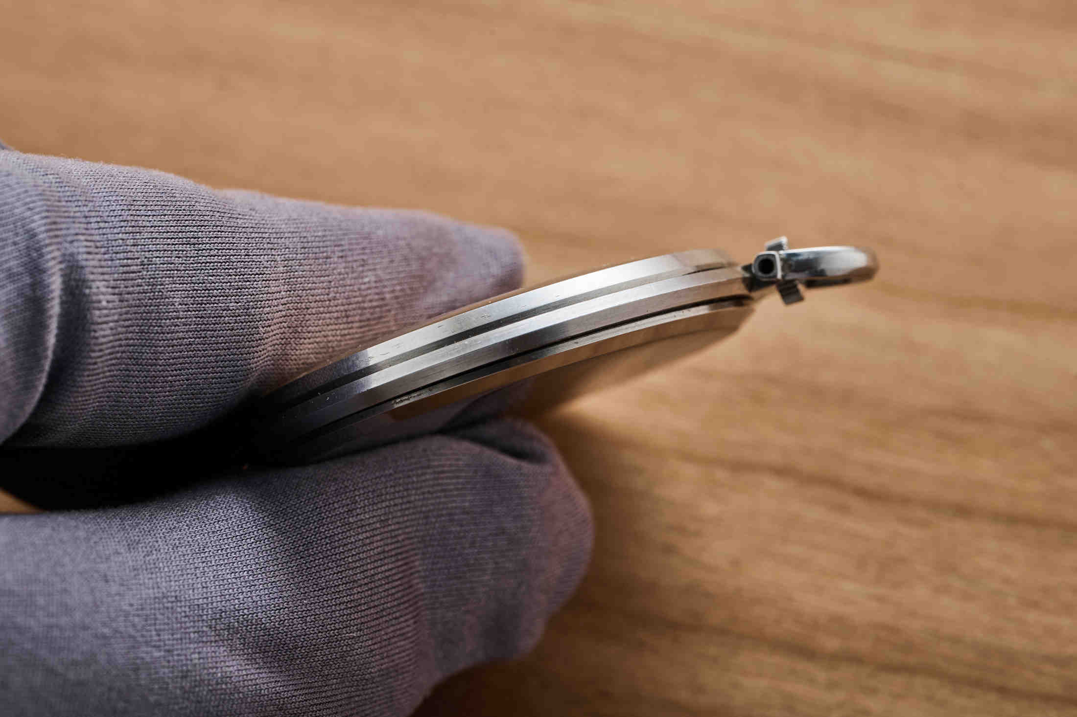 Then there’s the case – the final piece many makers take for granted. Take a look at other big names in the indie space right now, look at the case shape and lugs, and then look at releases from microbrands and consumer products across the industry. There’s a dearth of creativity, replaced with the standard round cases, sloping lugs with brushed surfaces and maybe a bit of a chamfer, and not much more. Rexhepi instead has taken inspiration for his platinum case from a vintage Ebel pocket watch that he picked up from Joël LaPlace.