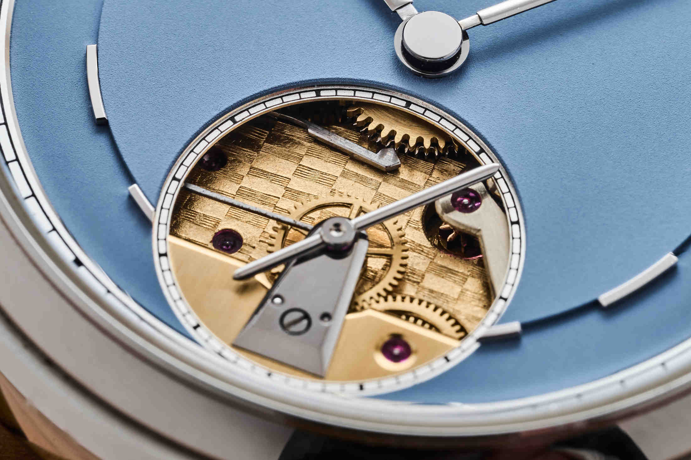 I’m generally not a fan of apertures on dials. They can often come across as very “open heart” in the way that feels like it’s trying to satisfy a first-time buyer and make them feel like they’ve got a mechanical watch. While there’s not as much going on here as on a tourbillon or the remontoir on F.P. Journe’s Chronomètre á Résonance, through the aperture, you can see the architectural inspiration that carries through the rest of the watch. Rexhepi chose a brick finishing inspired by his love of architecture (different from the Zenith G.F.J.), but it’s not the only architectural inspiration.