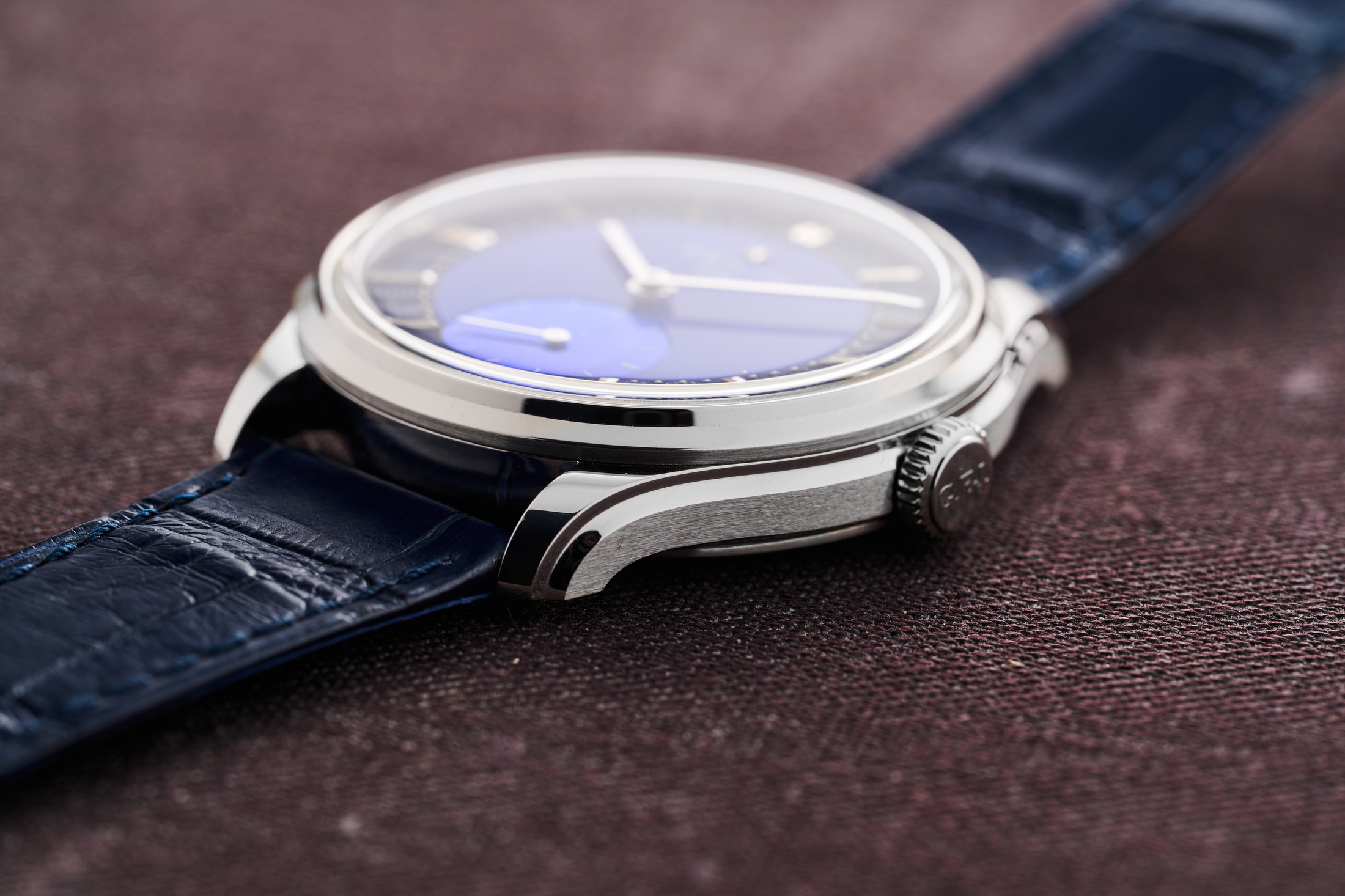 There’s no doubt that the new G.F.J. is a distinctly modern approach. The watch is a vehicle for a story – something that vintage brands would never think of. The dial features a brick guilloché outer track with a lapis lazuli center and blue mother of pearl subdial. These kinds of things would have been unheard of in 1962, but now, they’re a way for Zenith to tie the watch into their slate of other 160th anniversary releases with blue ceramic cases – something that would have been a bridge too far on this watch. Instead, the brand went with a platinum case measuring around 39mm by 10.5mm
