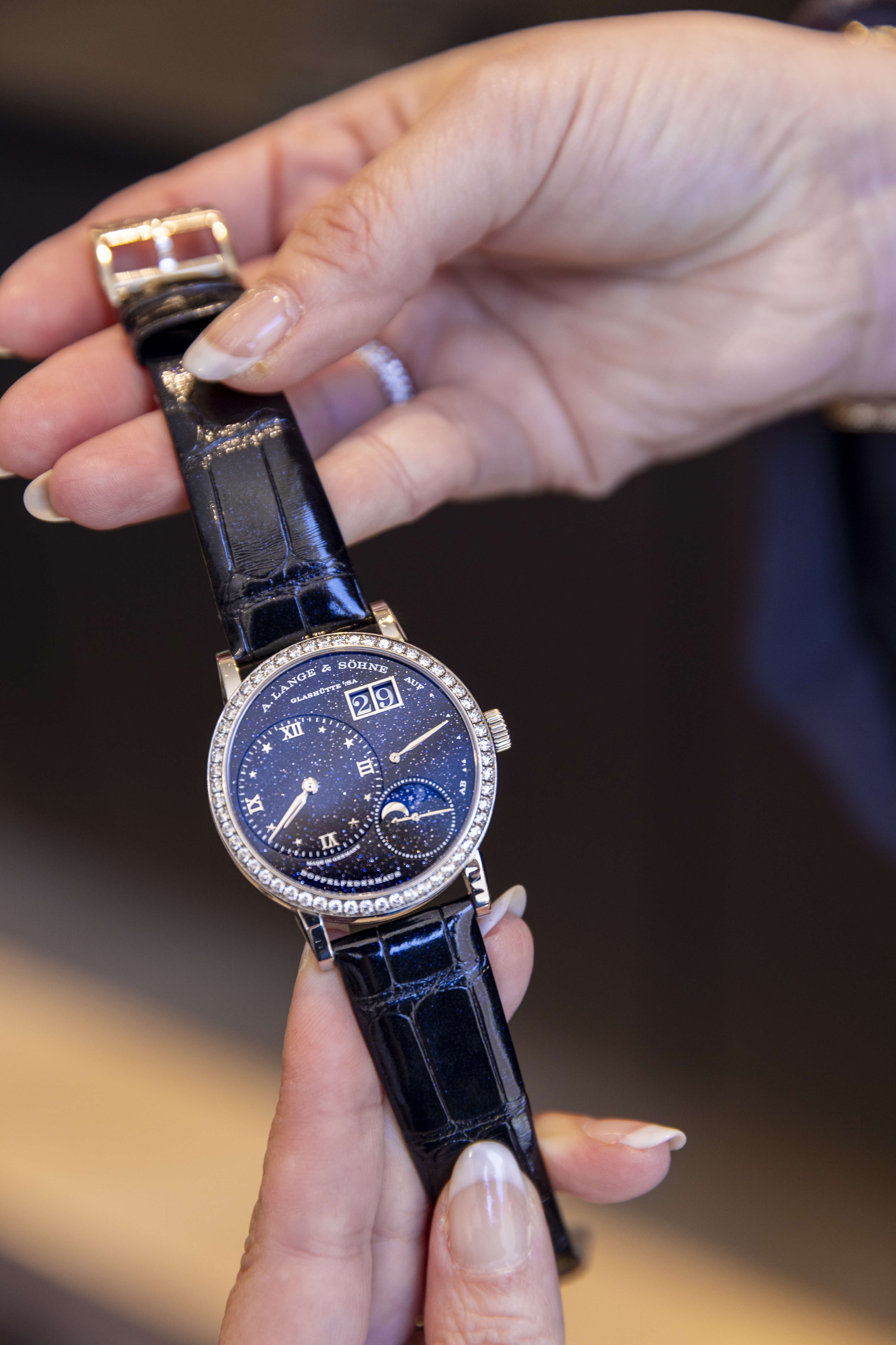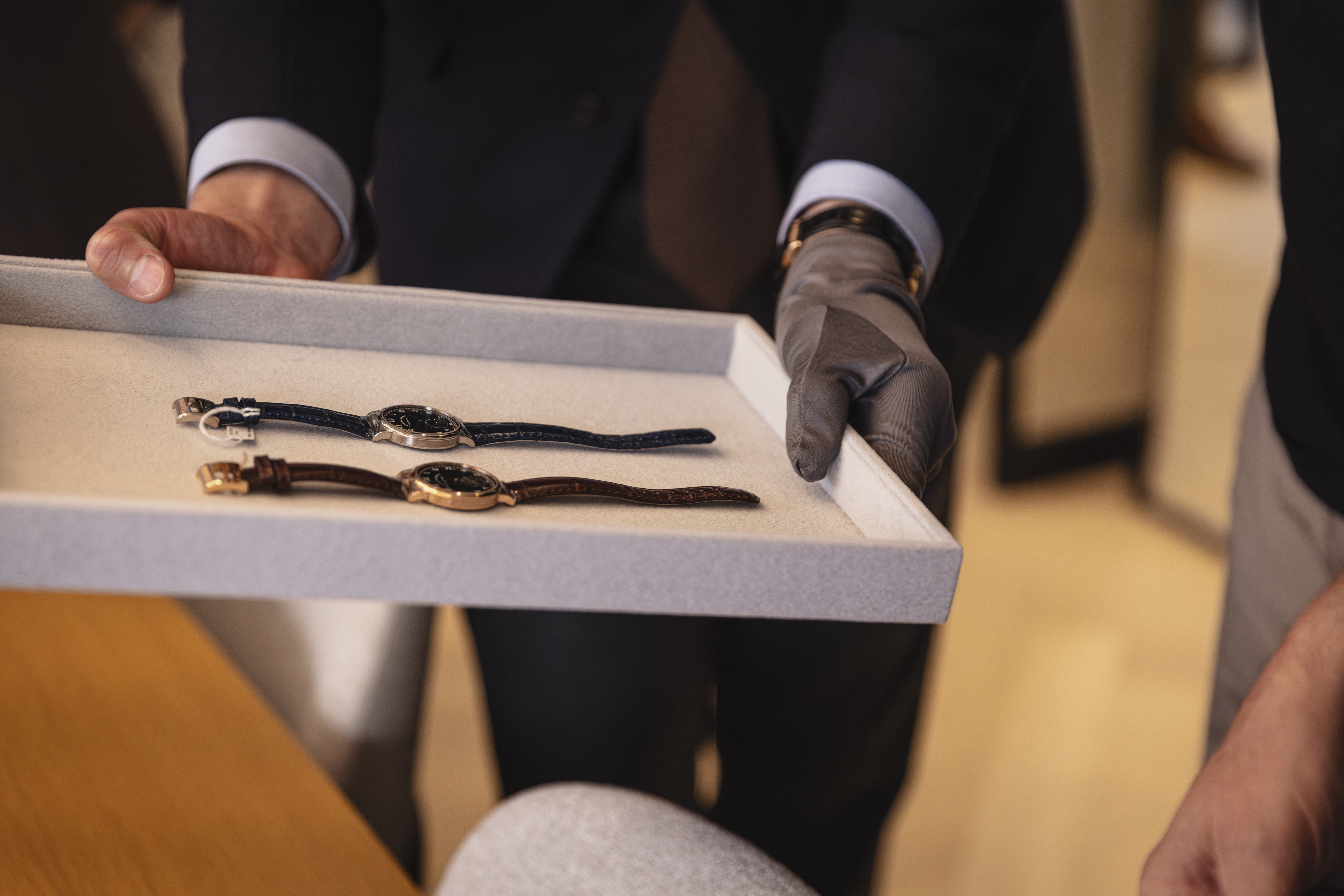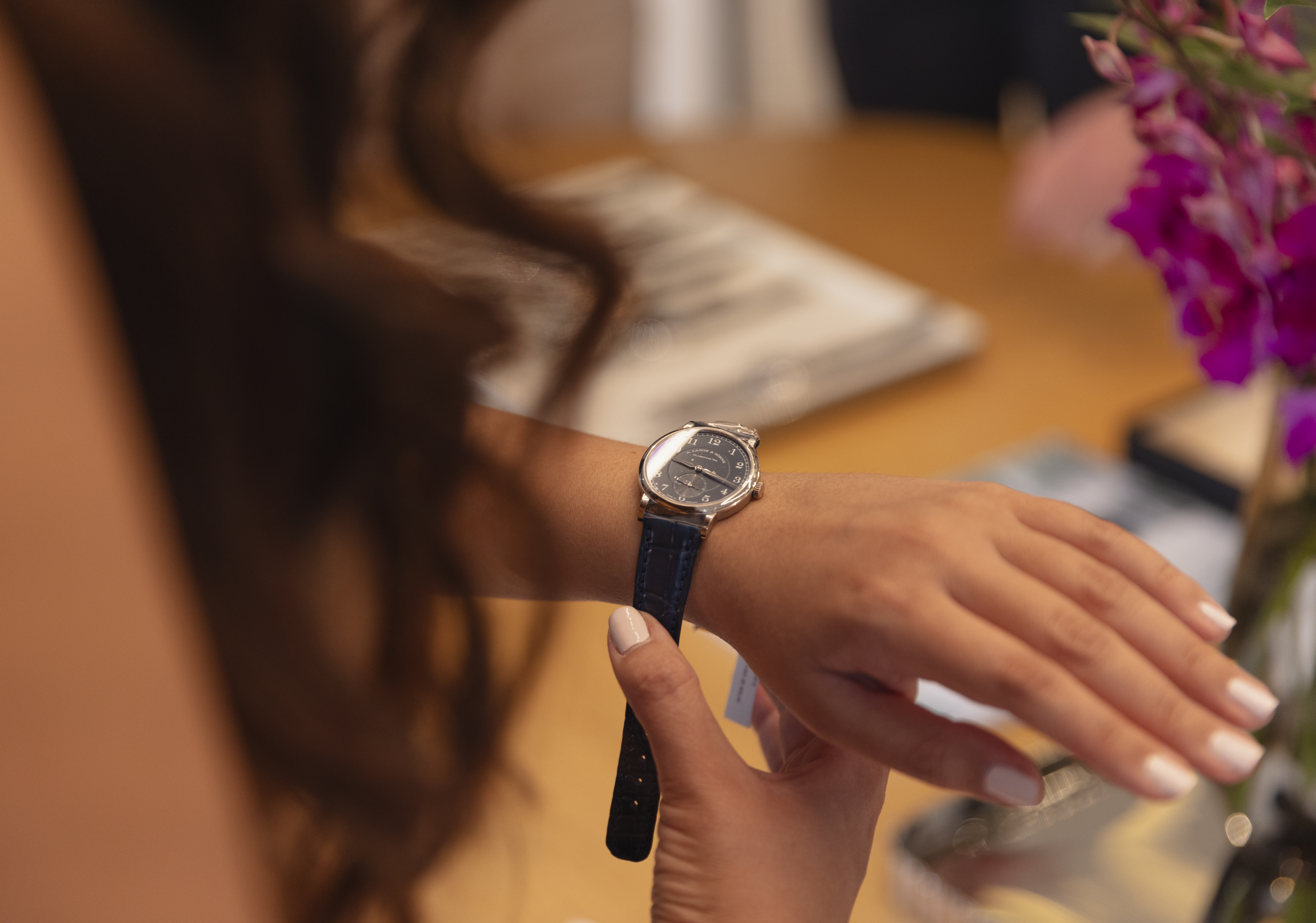 After arriving at A. Lange & Söhne’s San Francisco Salon, which opened last year on Geary Street in the heart of Union Square, guests enjoyed passed hors d’oeuvres along with top-shelf wines and spirits while admiring the Glashütte-based watchmaker’s latest creations. Every piece in A. Lange & Söhne’s range of watches embodies the brand’s singular blend of old-world craftsmanship and modern German precision, but guests were inevitably drawn towards the novelties unveiled recently at Watches and Wonders Geneva, which are on display for a limited time at the San Francisco Salon. Among these is the new 1815, which combines a 34mm white or pink gold case with A. Lange & Söhne’s latest manufacture 75th calibre, and the Odysseus Honeygold, which is the first example of the distinctive sport watch to feature a case and bracelet made from the brand’s richly-hued 18 k gold compound. Other highlights included the rare Datograph Perpetual Tourbillon Honeygold “Lumen,” a spectacular horological creation featuring several high-complications and a semi-transparent luminous dial.