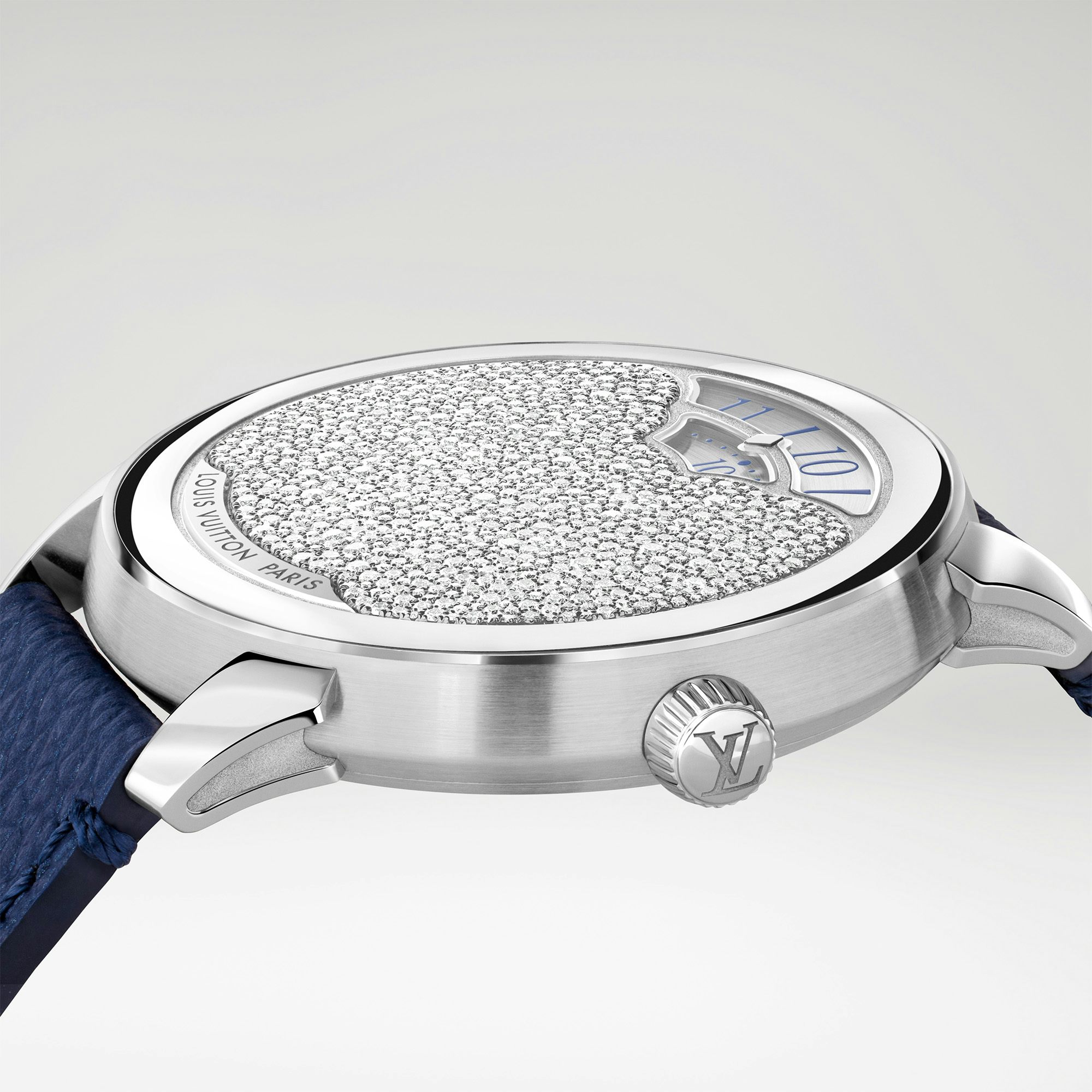 Presumably, the reason for the naming, the Convergence unifies the workshops of Louis Vuitton watchmaking La Fabrique des Boîtiers, case making, La Fabrique des Arts, rare handcrafts, and La Fabrique du Temps, movement design.