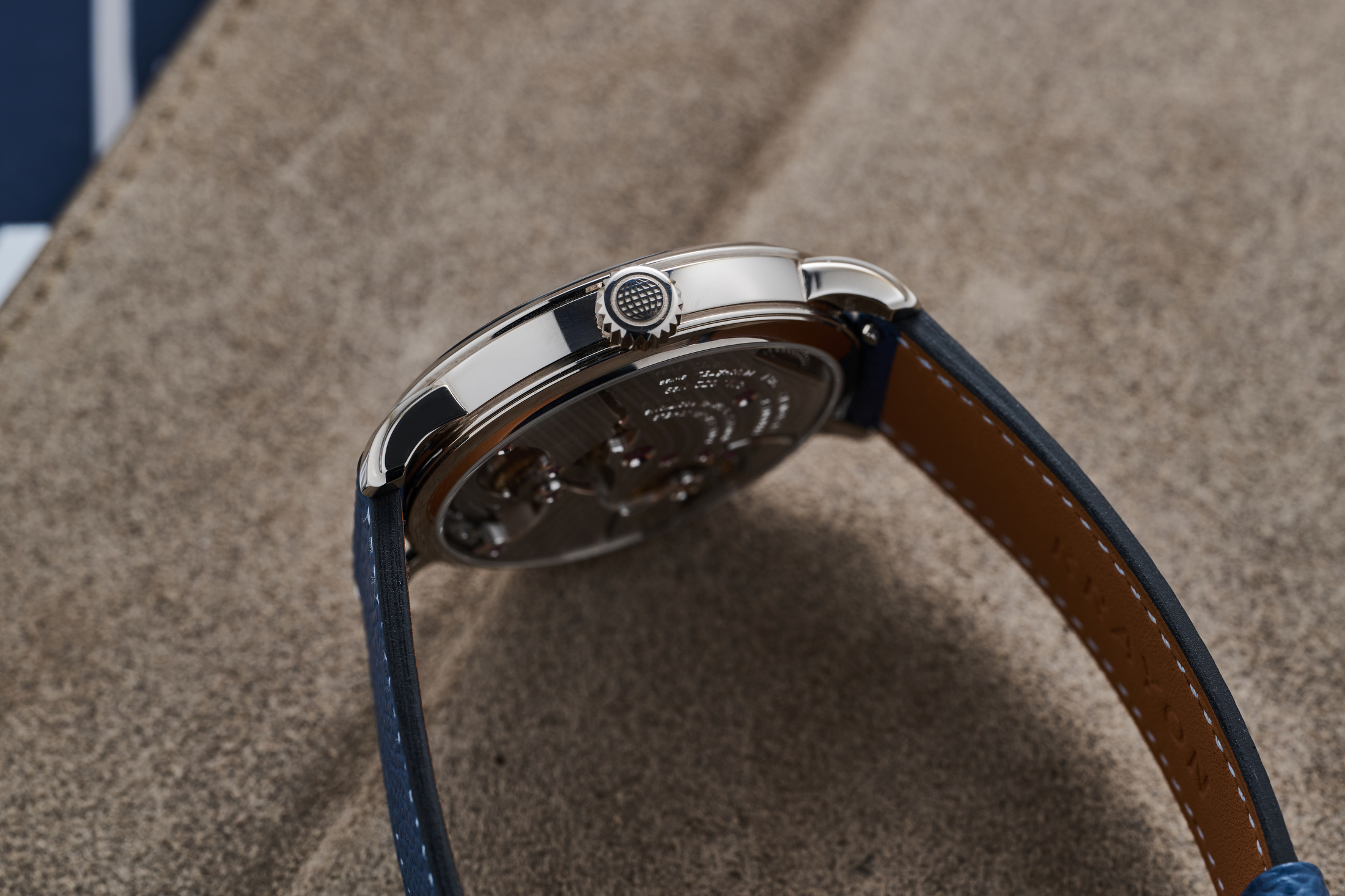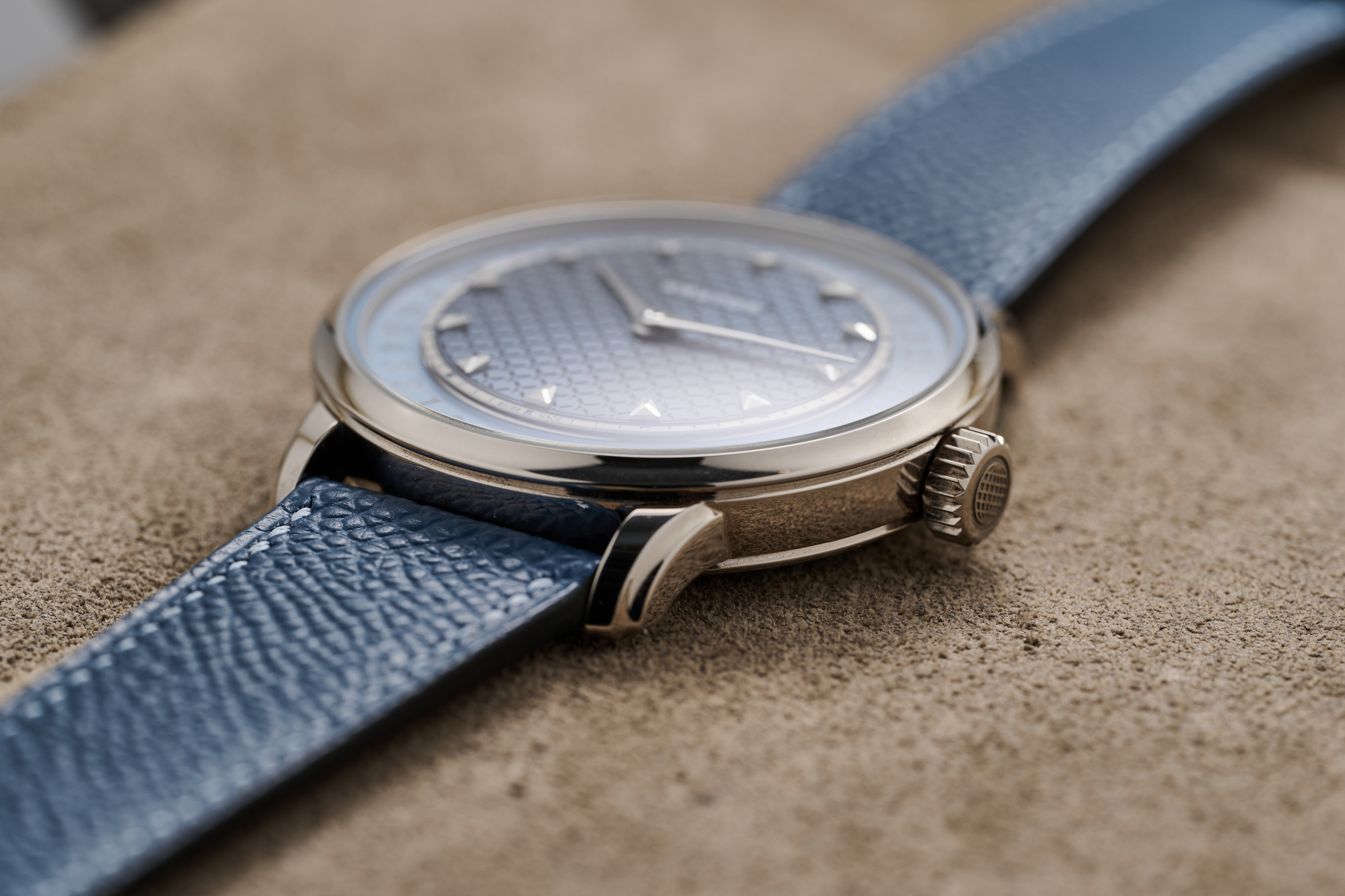 The movement is built for reliability and robustness but finished to the edge of its life in the best possible way. All the chamfers and black polish is done at a level that I think competes with some of the best finishers in the business. And it’s also incredibly thoughtful. The stripes for the plates and bridges, for instance, are the sine wave representing the length of the day over the course of the year in Neuchatel, where their workshop is located. The shape of the plate, starting at the crown, traces the shape of the coastline in Neuchatel as well.