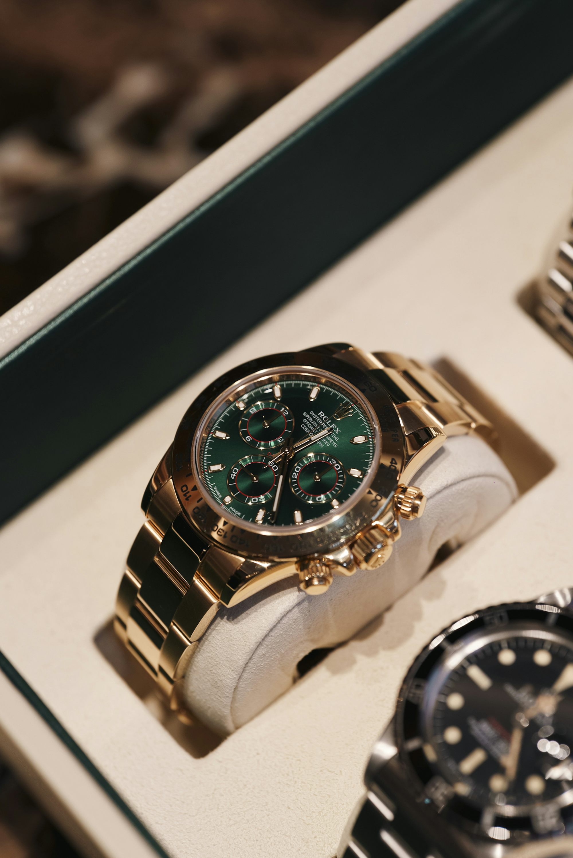 I recommend taking the elevator between floors, as it travels alongside the magnificent green bezel display, giving visitors a unique perspective on what has to be one of the most impressive features of the store. Upon reaching the first floor, visitors enter a space designed for comfort and exclusivity. From the very moment you walk into the boutique, the customer service is world-class, and there’s no better physical representation of this than this floor, which features an elegant lounge area, a fully functioning bar, and two private rooms offering VIPs a more intimate shopping experience. The bar isn’t just for show—it’s fully operational, serving the signature “1905” cocktail developed exclusively for this location. I can’t wait to try one, perhaps while contemplating that Comex Submariner en route from Geneva.