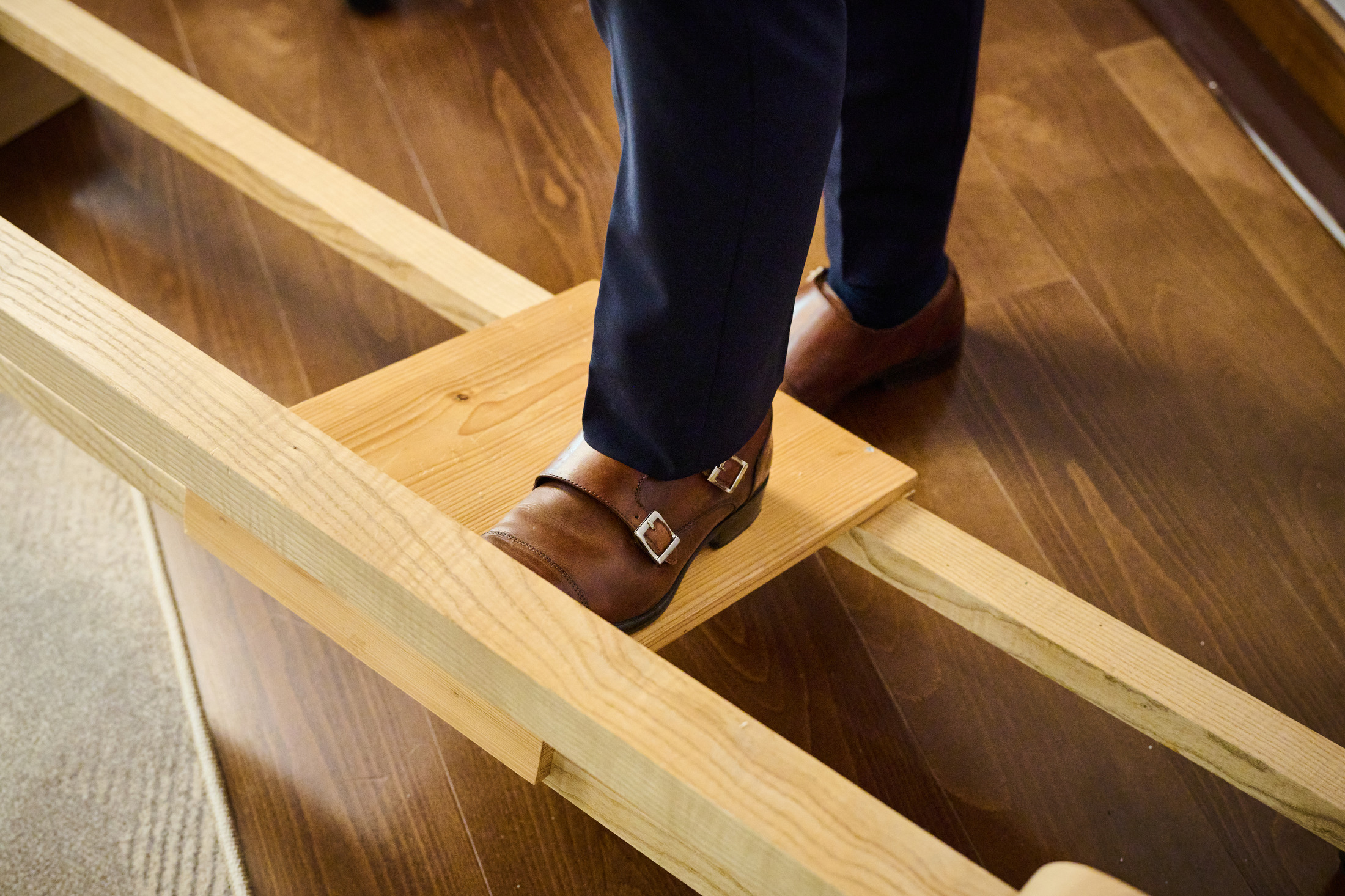 One of the most interesting parts about watching the artist work was the fact that the work was done standing and using a foot pedal to manually move the small saw.