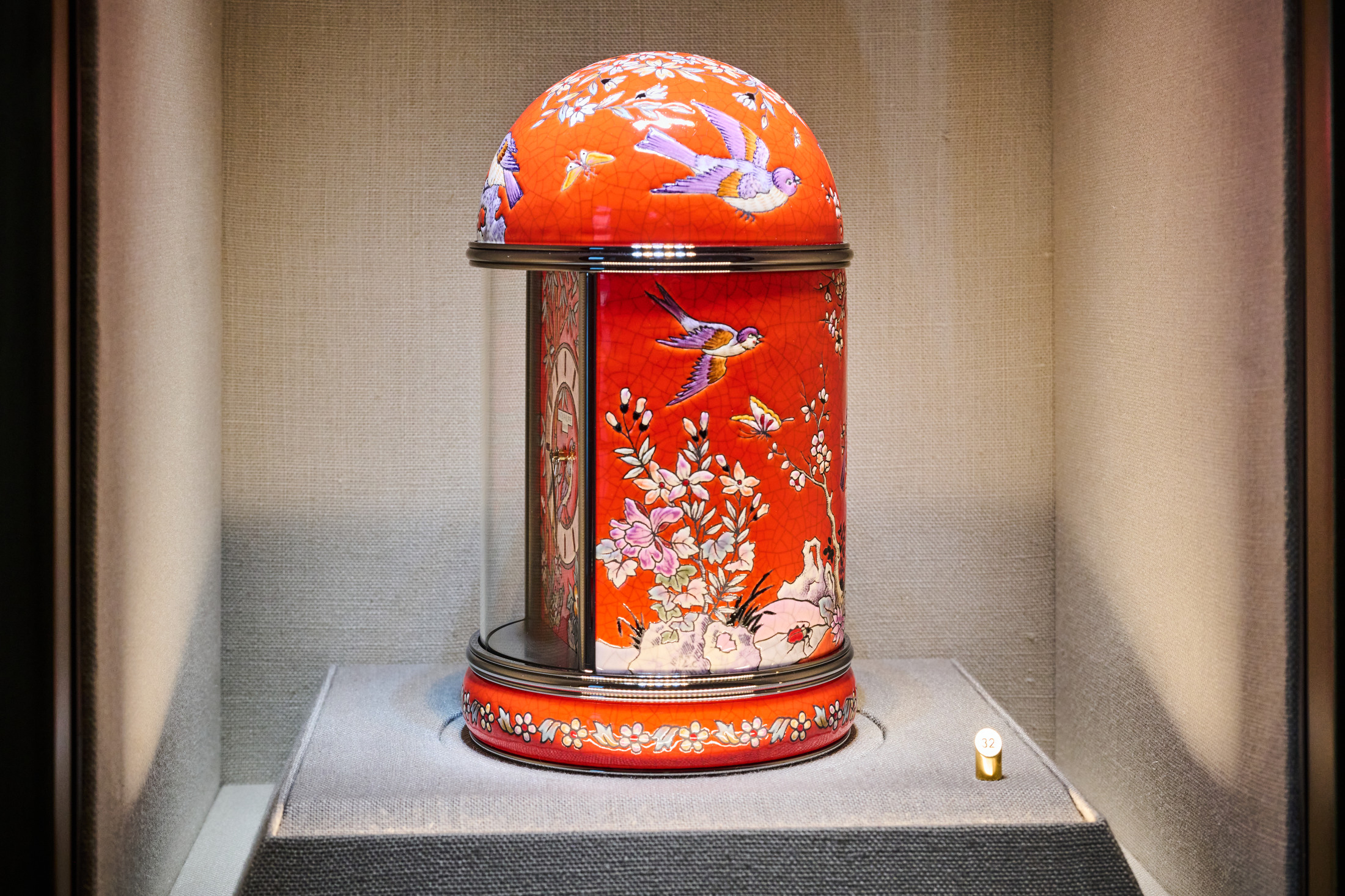 For other musical stylings, you can check out the dome table clock ref. 20195M-001, with cloisonné enamel and miniature painting on enamel in 44 colors.