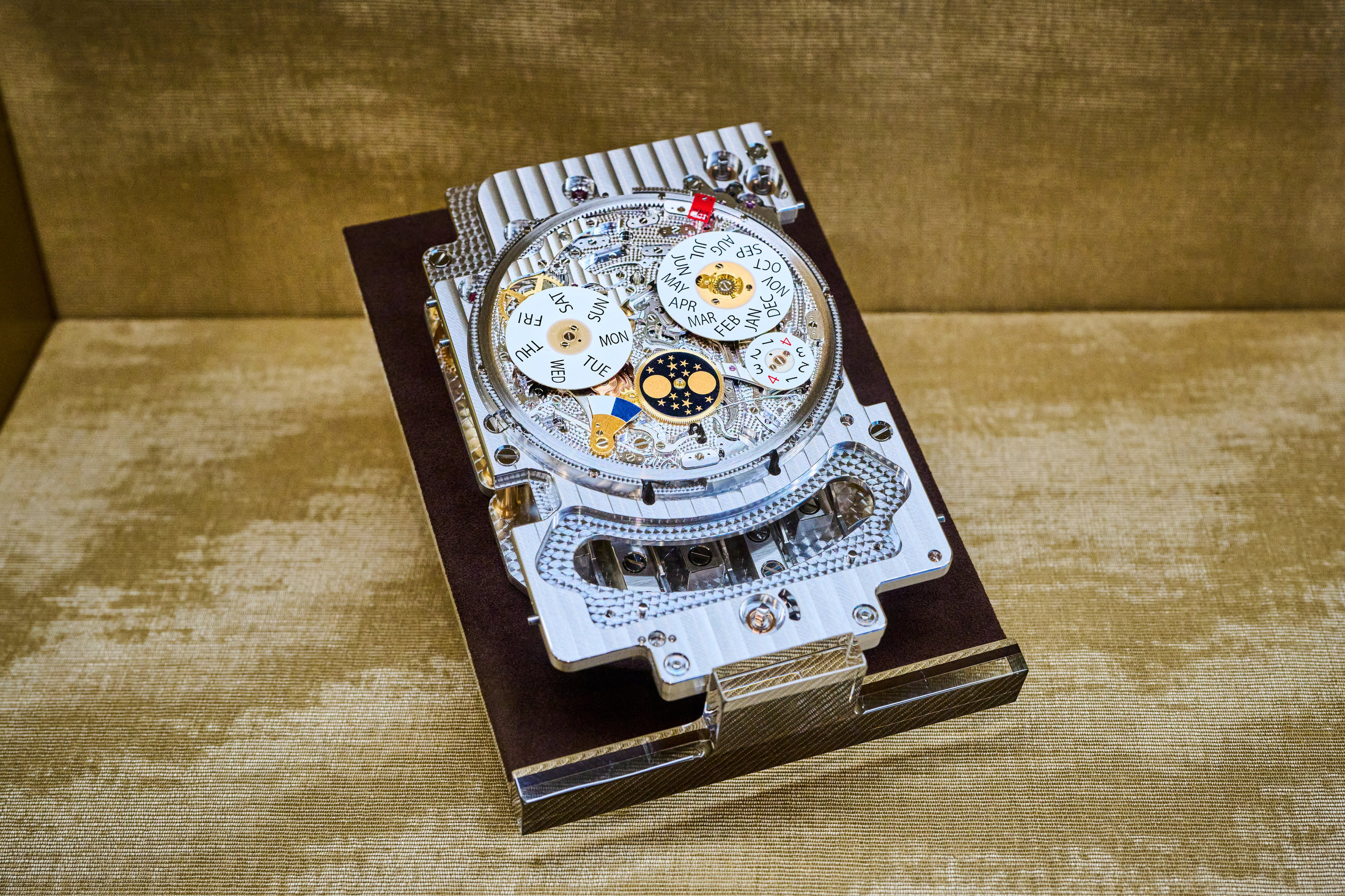 The wood marquetry-dialed ref. 5738/50G-029 Golden Ellipse “Bald Eagle,” or what I called the “Bald Eaglellipse.” The brand was particularly proud of this watch, choosing to highlight as one of the watches on the giant three story video screen near their booth.