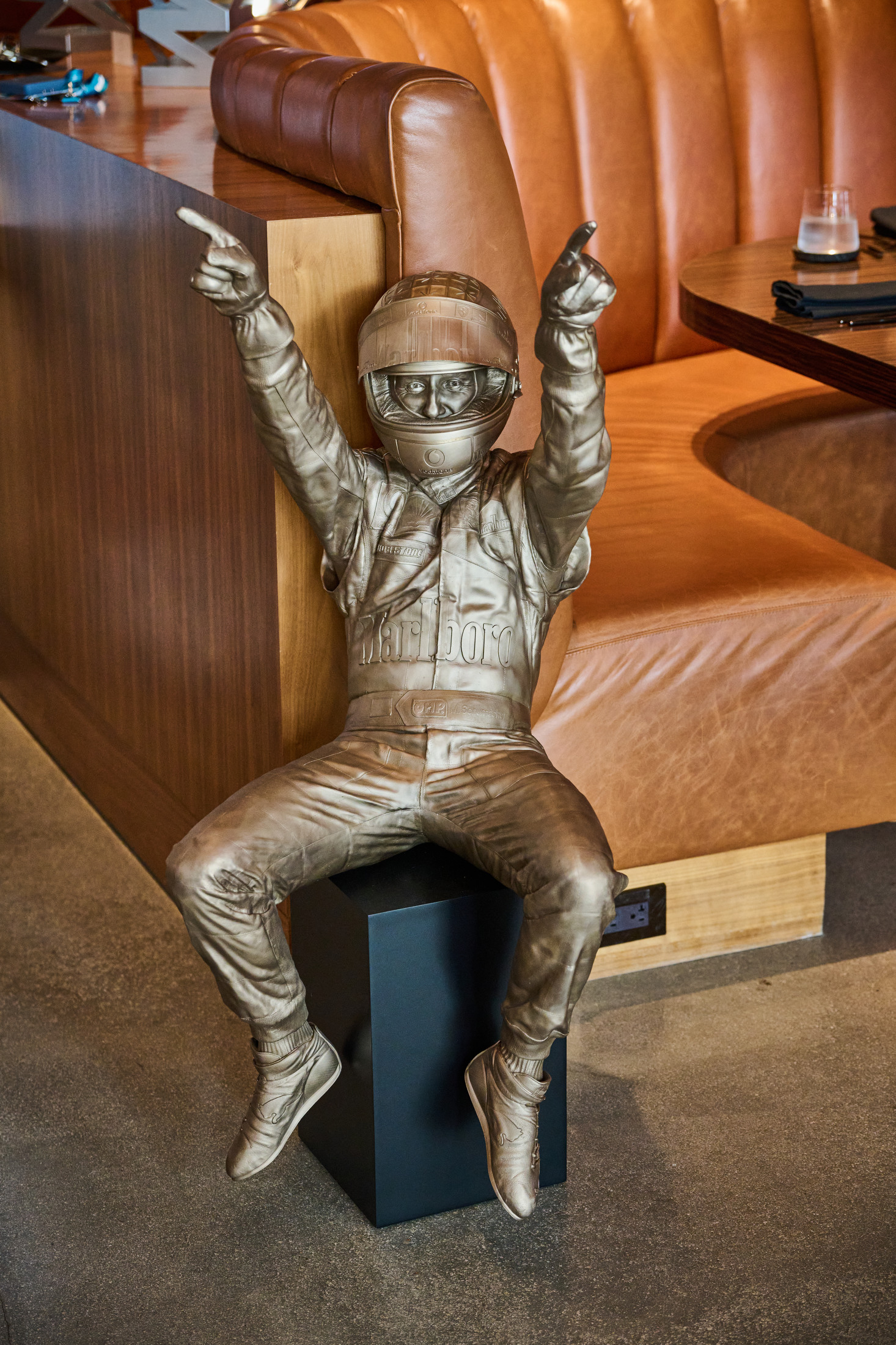 A statue of Michael Schumacher by artist Paul Oz in the entryway to the club.